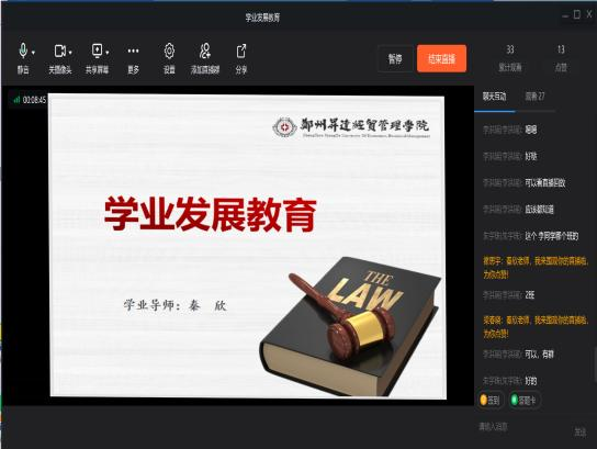 为使法学专业新生更好地了解专业发展、课程设置,做好学业规划,9月21日下午,法学专业在钉钉平台开展了2022级法学本科新生线上学业发展教育主题班会。