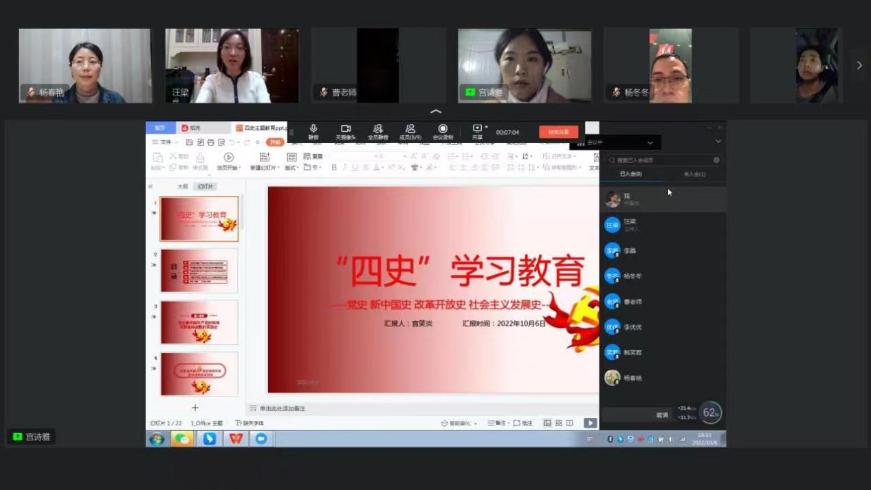 10月6日晚,太阳集团tyc539汉语言文学教研室党支部通过钉钉召开“四史”专题学习会主题党日活动。会议由党支部书记汪梁主持,汉语言文学教研室全体党员参加了此次学习讨论会。