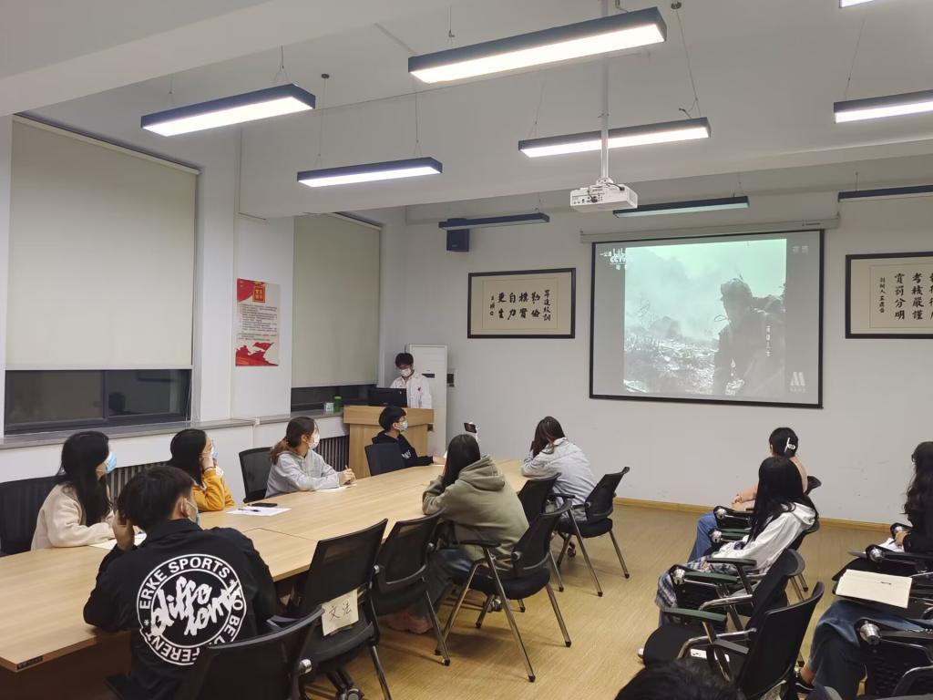 方崇雯同志向大家展示了电视剧《觉醒年代》的相关片段,介绍了一百年前先进分子和热血青年追求真理、燃烧理想的澎湃岁月,鼓励支部全体成员要笃行不怠履行“请党放心,强国有我”的青春誓言;周华杰同志为大家播放了电影《英雄儿女》的相关片段,展现了抗美援朝志愿军们不怕牺牲的革命英雄主义,慷慨激昂说道:“要继承先辈遗志,努力学习,让红色精神久久撒播中华,代代相传”。张甜梦同志进行了总结发言并嘱托支部全体成员在党的二十大召开之际要不忘来时路,奋勇前行,争做模范先锋,要时刻牢记党的宗旨,不断提升自身能力,发挥各自优势,做对社会有用之材。