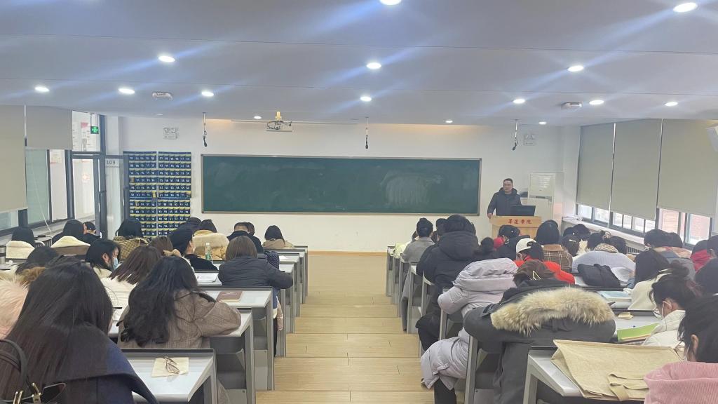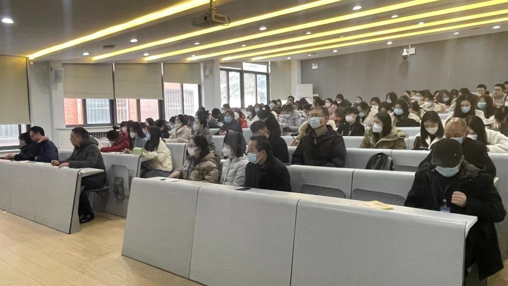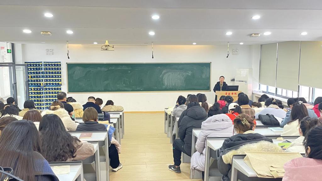在会上,段丰乐对上学期工作进行了总结回顾并对本学期工作进行部署。他首先向本学期新入职教师的11位老师表示欢迎。接下来,他对上学期在疫情防控工作中做出突出贡献的教师表示肯定和感谢。最后,段经理对本学期工作进行了部署,重点强调了学前教育专科员工师范生认证、法学品牌专业建设和员工拓展三项专项工作。