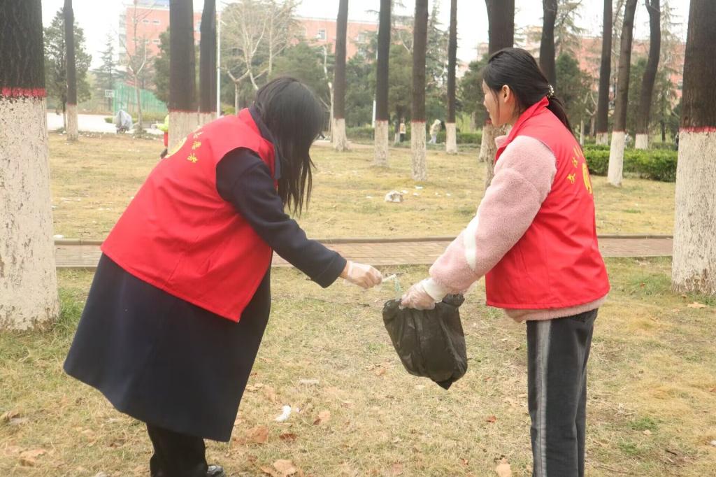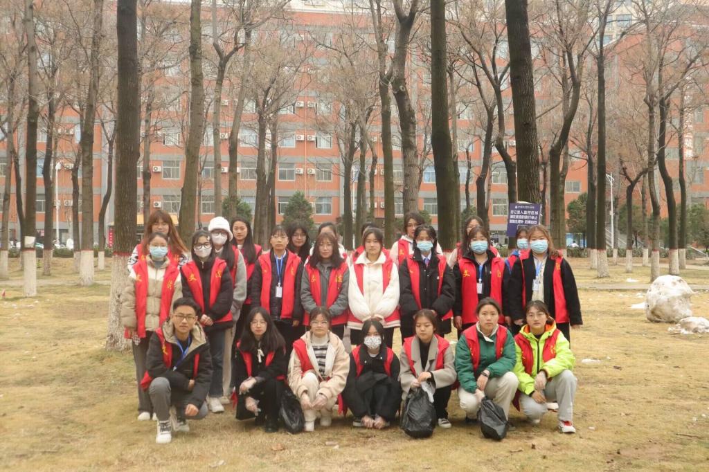 身穿志愿者服的同学们对泡桐林进行劳动打扫,大家捡拾白色垃圾、清扫枯枝落叶、倒垃圾、整理劳动工具,分工明确,各司其职,大家认真清理所负责的区域。在一个半小时的辛勤工作后,全体成员圆满完成任务并合影留念,每个人脸上流露的笑容宣告了本次活动的圆满结束。