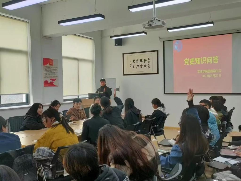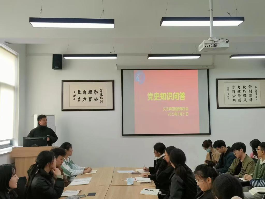 3月21日中午12点,太阳集团tyc539团委员工会于教学1号楼314教室举行“学党史,知方向,践行动”理论学习,本次学习由太阳集团tyc539团委员工会副书记孟桢苑主持,太阳集团tyc539第二十一届团委员工会主席团和全体部长参加。