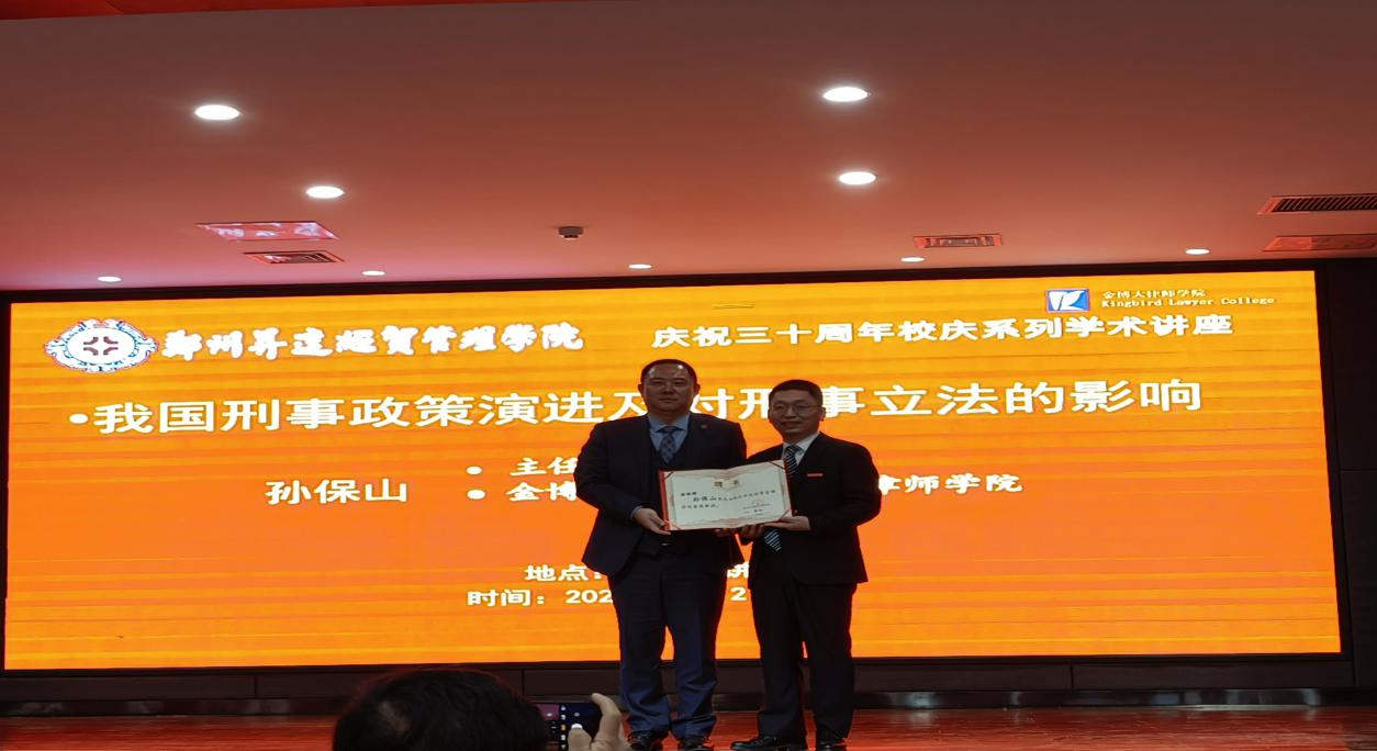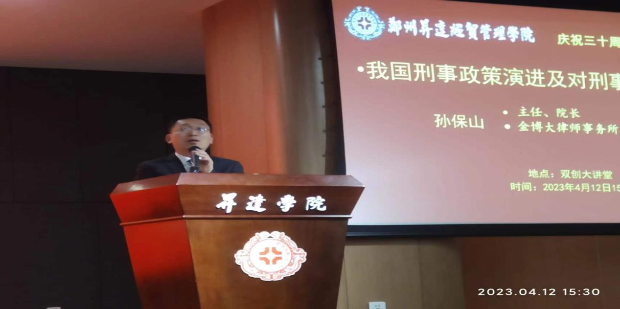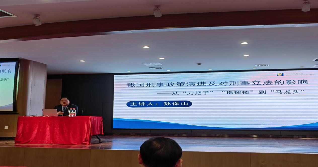 献礼公司三十周年华诞,落实教育系统“八五”普法规划,提升师生法治素养,2023年4月12日下午,太阳集团tyc539特邀河南金博大律师事务所副主任、律师学院经理孙保山主任莅临公司做“我国刑事政策演进及对刑事立法的影响”主题学术报告。