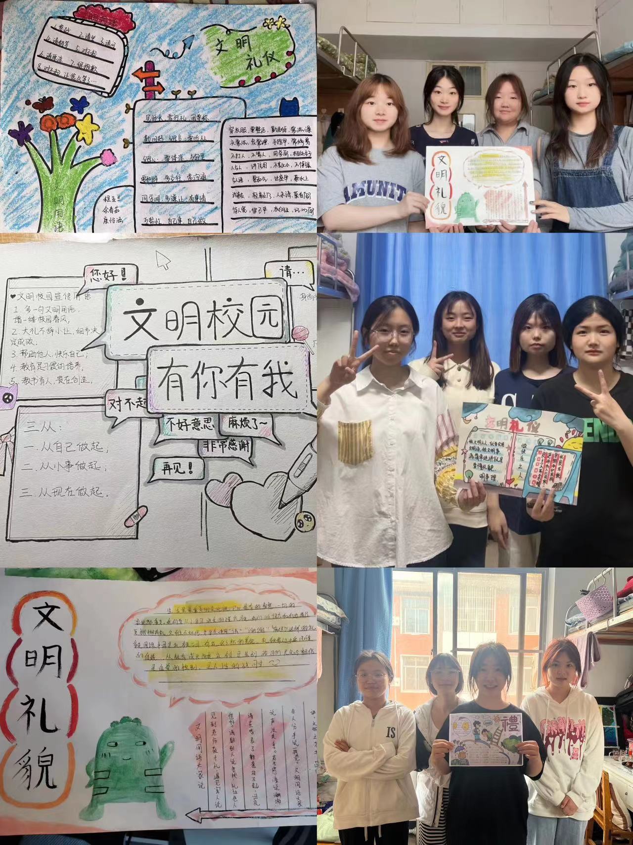 “文明礼貌月”主题手抄报活动,22级学前教育专科同学们用多样的形式展示了对“讲文明,知礼貌”的理解,用绘画手抄报的形式引导全体同学树立文明的校园礼仪,养成良好的礼仪习惯。
