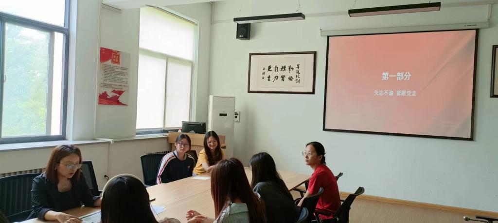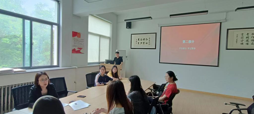 王卫丽书记从三个方面阐释了“紧跟党走,不忘初心”。一是坚定不移跟党走,为党和人民奋斗是对百年来中国青年运动历史规律和时代主题的科学总结;二是坚定不移跟党走,为党和人民奋斗是新时代中国青年更好成长、更快发展的根本所在;三是坚定不移跟党走,为党和人民奋斗是新征程中国青年在青春的赛道上跑出当代青年最好成绩的科学指引。紧接着,王卫丽书记以五四青年运动、抗疫英雄钟南山、冬奥健儿苏翊鸣、乡村振兴英雄黄文秀等先进事迹和人物为例,让支部师生更加真切地体悟“紧跟党走、不忘初心”的内涵和本质。