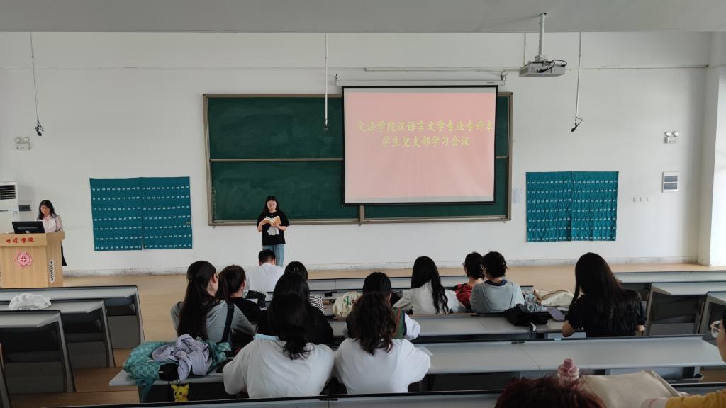 5月26日中午,汉语言文学专升本员工党支部在教学1号楼118教室召开主题教育理论学习会,会议由支部书记张丽凯主持,支部全体党员参加。
