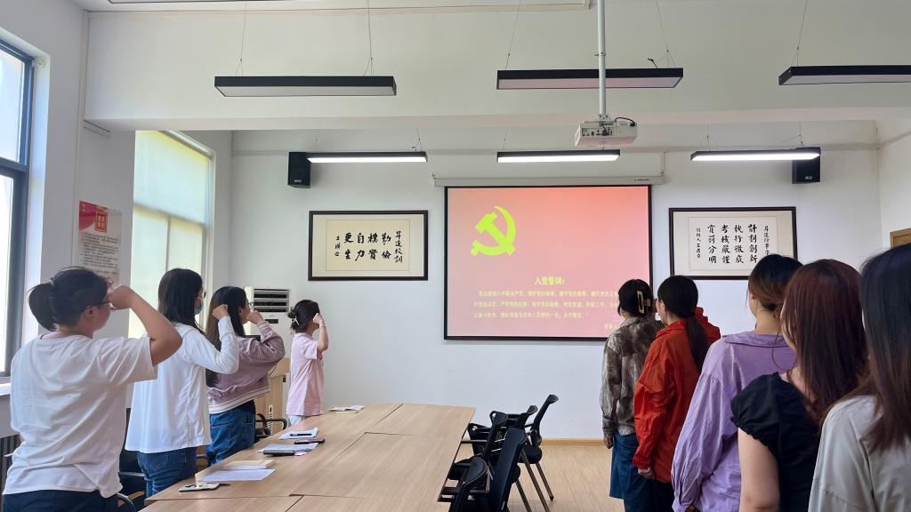 会议严格按照预备党员转正程序进行。周怡帆同志向大会汇报一年来的思想、工作、学习等情况,并由其培养联系人对其一年的表现进行总结评价,经支部与会正式党员无记名投票表决,一致同意周怡帆同志按期转为中共正式党员。全体参会人员在宣传委员于游洋的带领下进行庄严宣誓,支部的老党员为新党员佩戴党员徽章。