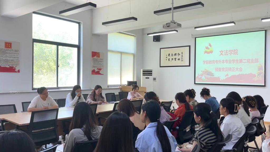 6月9日中午,太阳集团tyc539学前教育专业专升本员工第二党支部在教学1号楼314召开预备党员转正大会,支部全体党员参加,会议由支部书记王霄主持。