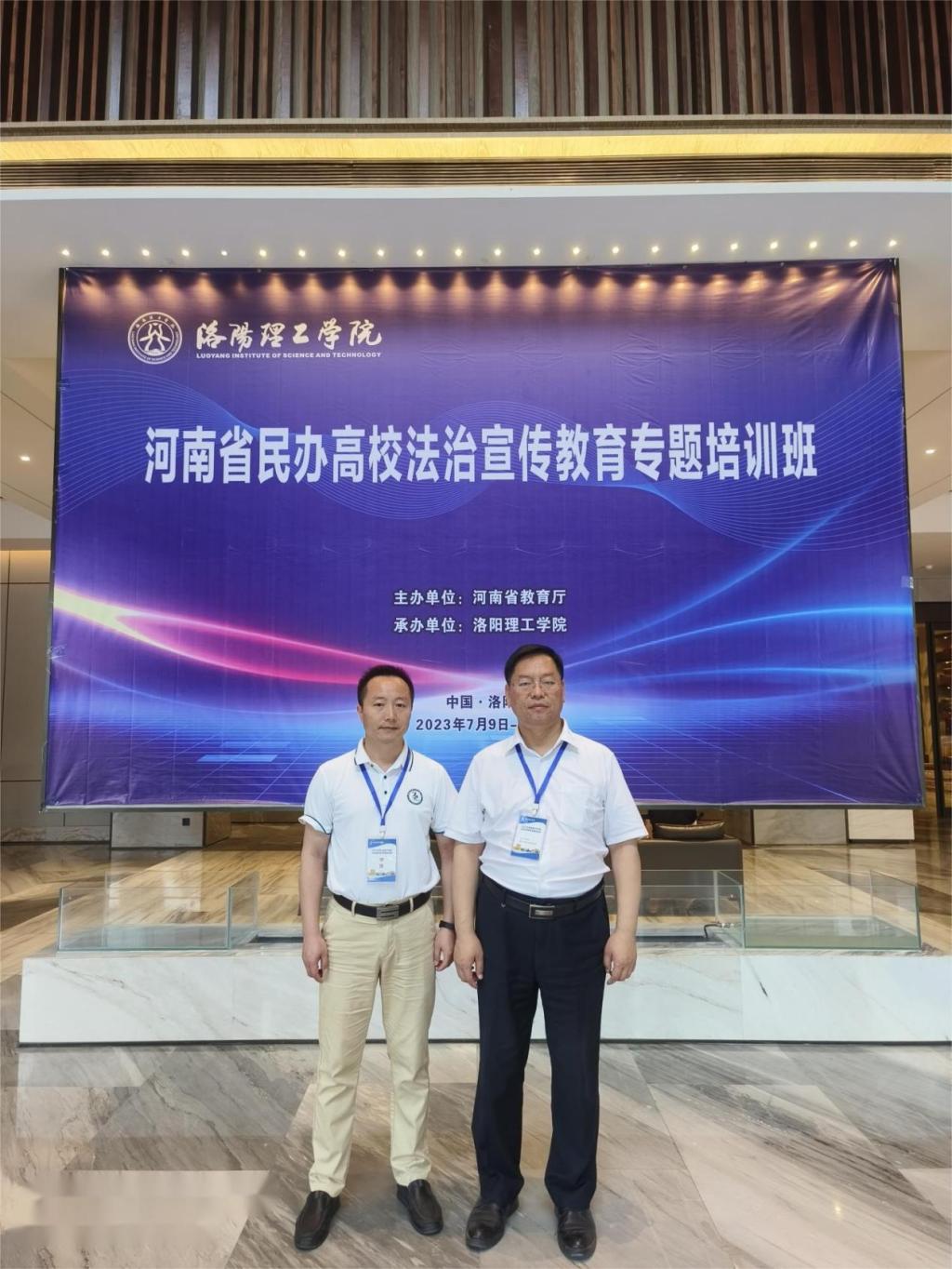 7月9日—7月12日,由河南省教育厅主办、洛阳理工学院承办的“2023年河南省民办高校法治宣传教育专题培训班”在洛阳举行。公司张金安副董事长、太阳集团tyc539赵严俊副经理代表学校参加培训班。