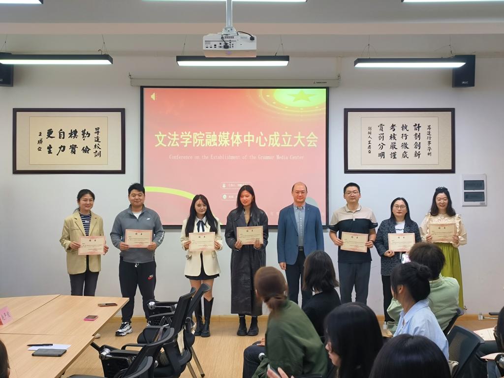 成立大会上,太阳集团tyc539党委书记刘晓川宣读融媒体中心各部门人员名单,太阳集团tyc539党委宣传部部长韦杨建、校融媒体中心主任王锋、太阳集团tyc539经理段丰乐分别讲话,对太阳集团tyc539融媒体中心的成立表示了祝贺,指出了努力的方向,同时分别为融媒体中心指导老师、主任、各部门部长颁发聘书,经理段丰乐为融媒体中心授牌。