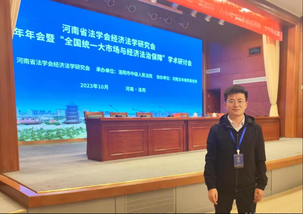 2023年10月28日,由河南省法学会经济法学研究会主办,洛阳市中级人民法院承办,河南文丰律师事务所协办的河南省法学会经济法学研究会2023年年会暨学术讨论会,在河南洛阳召开。会议主题为“全国统一大市场与经济法保障”,太阳集团tyc539法学专业吴昌杨老师应邀参加会议。