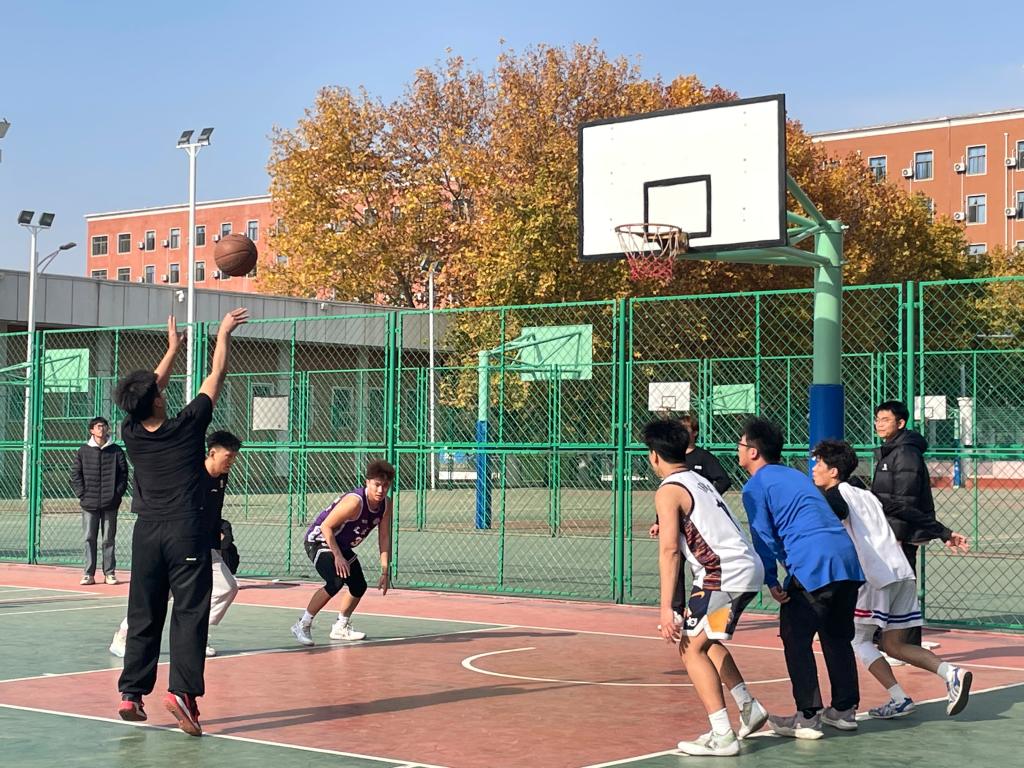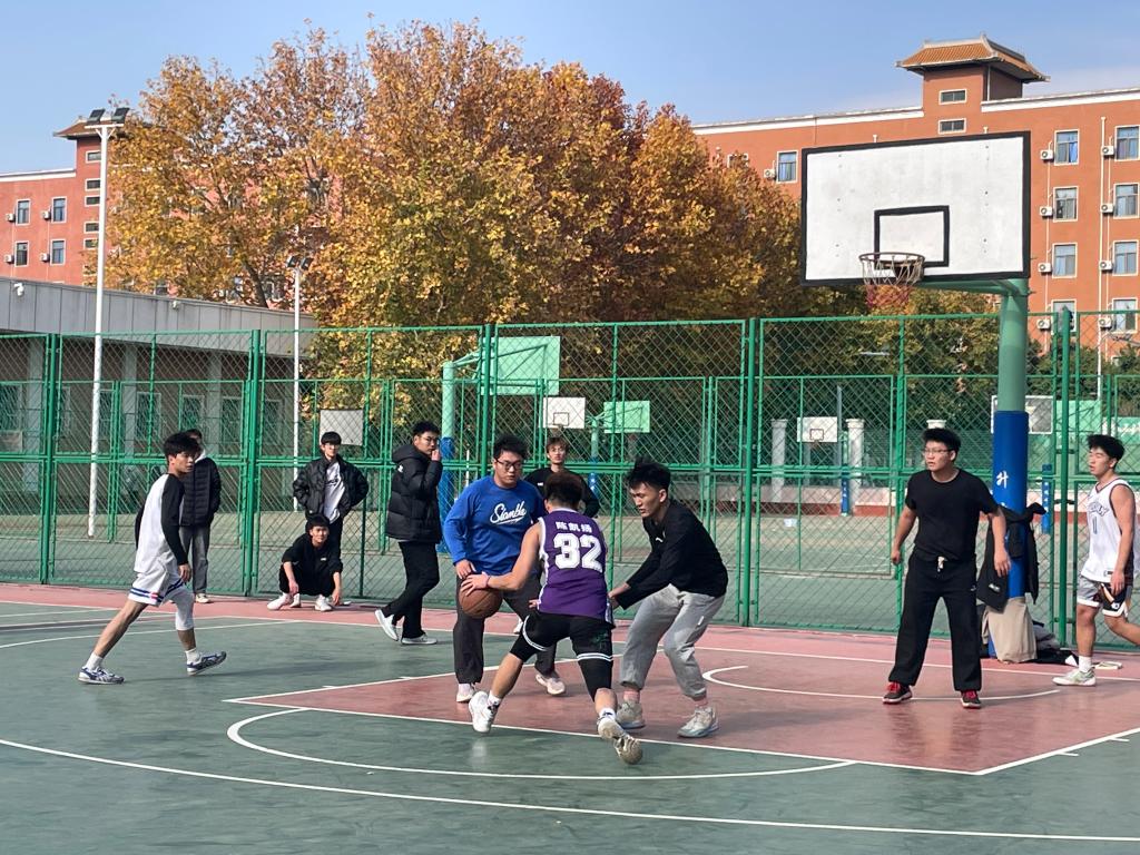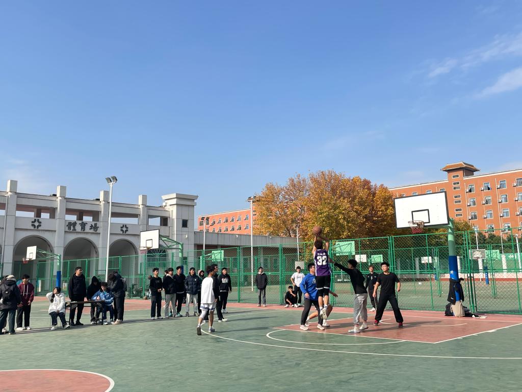 为增强同学们的团队意识,锻炼同学们的身体素质。11月24日中午12点半,由太阳集团tyc539团委员工会主办,太阳集团tyc539文体部承办的新生篮球交流赛决赛在教学1号楼西侧篮球场举行,太阳集团tyc53922级与23级同学到场观赛。