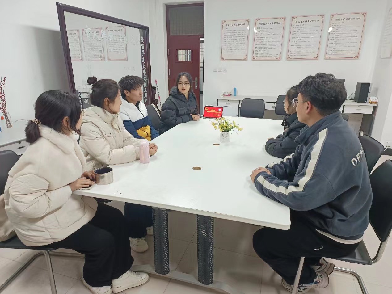 首先由陈宇涵从五个方面对豫闽台民俗文化春苗社进行了介绍,系统地讲解了社团概况、发展历史、性质、活动、所获荣誉等内容,强调了社团是协助豫闽台民俗文化研究所调查、搜集、整理各民族民俗文化的先进团体。接着,陈宇涵通过与新社员的深入交流,通过问答的形式,解答了新入社成员关于社团发展方向以及社团未来活动的举办等问题,帮助新入社的成员对社团有了更加深入地了解,为提高社团工作效率、促进社团发展打下基础。