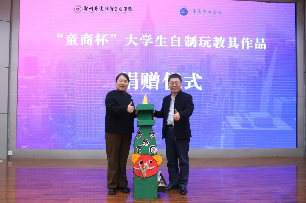 论坛中,40名公办及民办幼儿园园长被聘为童商产业学院“双创导师”,段丰乐经理向郑州市颖河路幼儿园捐赠“第二届童商杯玩教具大赛”员工作品,传递爱心。